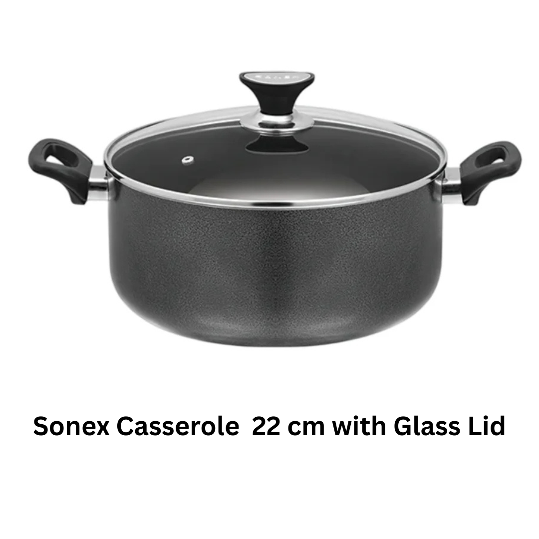 The Sonex Classic Casserole with Glass Lid is efficient cooking and effortless monitoring. Its nonstick surface ensures even heat distribution, while the glass lid helps retain moisture and allows you to easily check your dish without lifting the lid.